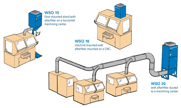 WSO是配套數(shù)控機(jī)床的優(yōu)選油霧過濾器。當(dāng)相應(yīng)的加工操作改變時,WSO油霧過濾器可以通過更換濾芯,便可以實現(xiàn)收集和過濾三種類型油霧(含水溶性冷卻劑油霧、含切削油、含油煙霧)。WSO操作更簡單、維護(hù)成本更低、過濾效果更佳。